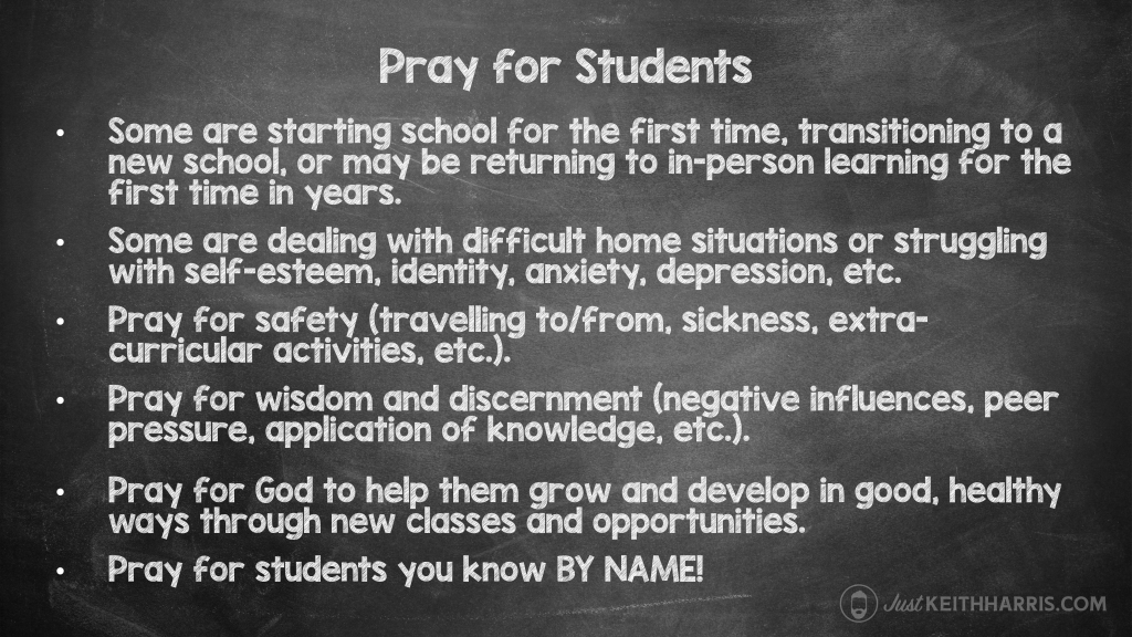 This is meant to be a resource to help you pray for the upcoming school year – local schools, students, parents, teachers, administration, and school staff.