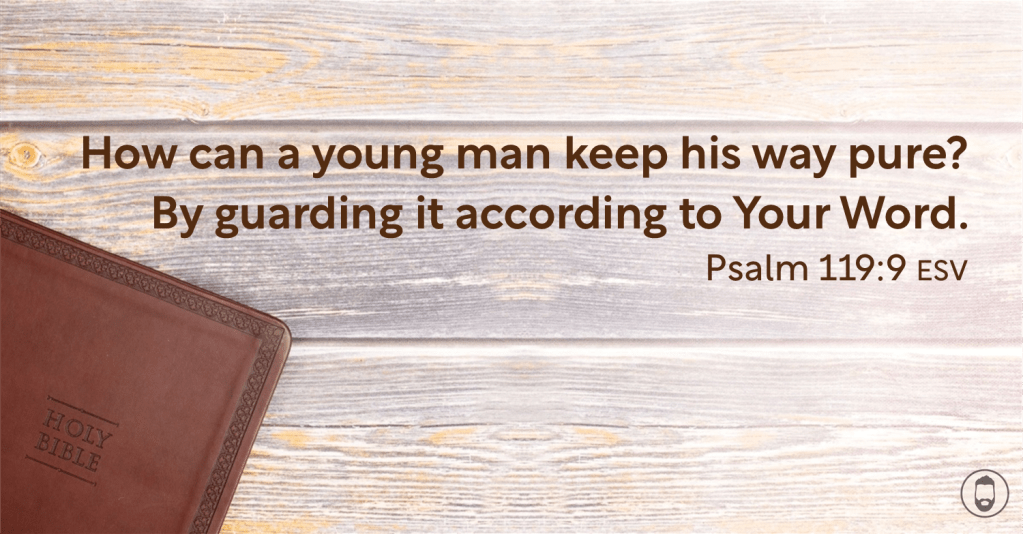Today’s verse is simple, involving a question and an answer. I find that simple, bite-sized chunks help me keep the passage on my mind. It sticks in my memory better, which is part of why we meditate on the Word. The question is very practical, how can a young person (not limited to men via the context) keep their way pure — or what can they do to live holy lives? The Psalmists answer is simple and is something worth remembering: guarding it according to the Word.