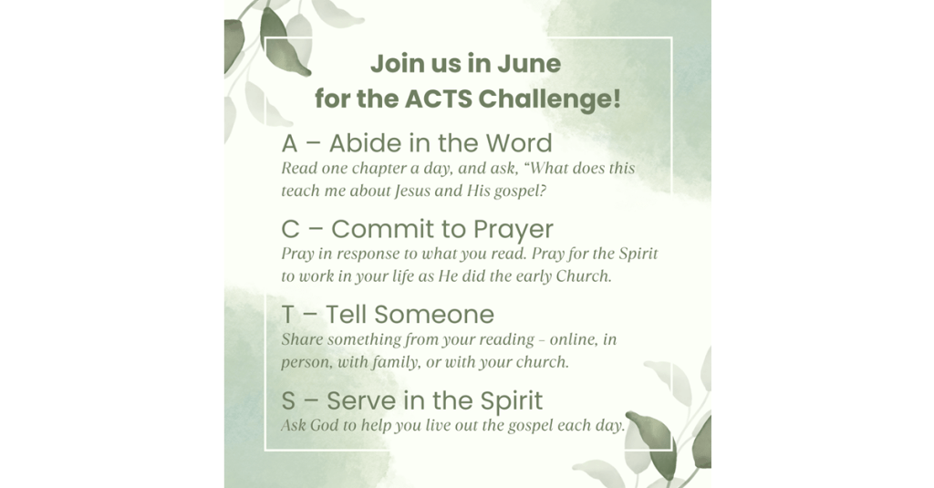 We’re excited to spend the month of June diving into the book of Acts—one chapter each day—as we follow the Spirit-empowered mission of the early Church. This isn’t just a reading challenge. It’s a call to live out the gospel.