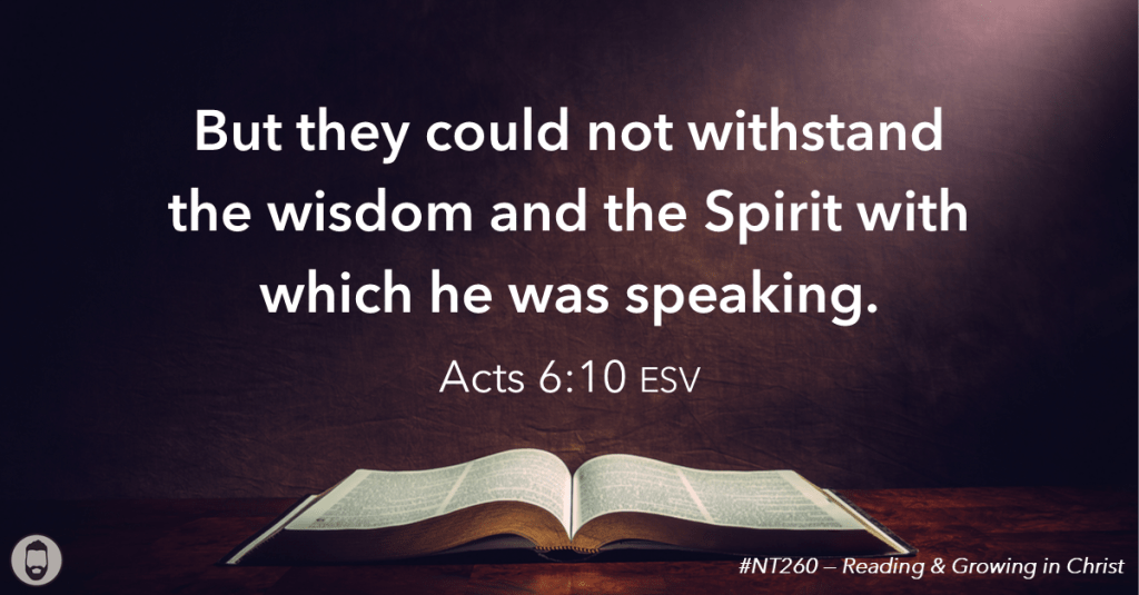 Stephen, full of grace and power, did great signs (v. 8). Debaters from several synagogues couldn’t resist the wisdom and the Spirit in his words (v. 10), so they stirred up false charges against him—saying he spoke against Moses, the law, and the temple (vv. 11–14). As Stephen stood before the council, his face looked like an angel’s—God’s peace and presence were on him (v. 15).