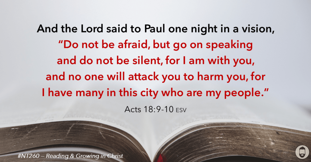 Where do you need the Lord’s “Do not be afraid” today? Ask Him for courage to keep speaking, trusting that He has people He intends to save through the word (vv. 9–11).