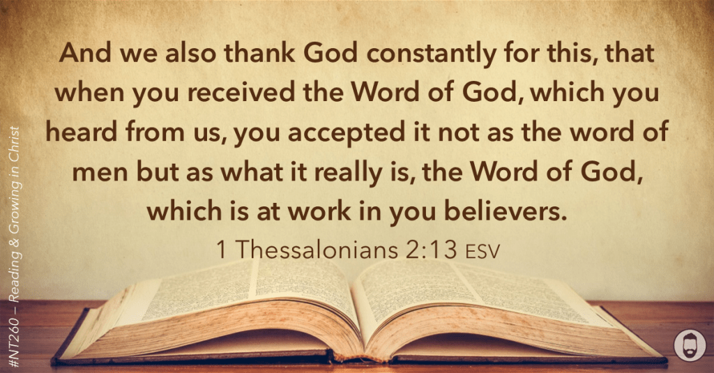 Write a short note (text or card) to someone who helped you grow in Christ. Thank them for sharing “the gospel of God” and their life (v. 8), and tell them one way the word is still at work in you today (v. 13).