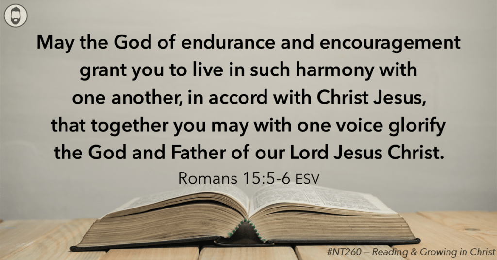 Paul finishes his teaching on “the strong and the weak” by making the “strong” own the responsibility: real strength doesn’t insist on its own way—it bears with the failings of the weak and aims to build others up (vv. 1–2). Christ is the model. Jesus did not please Himself; He endured reproach and suffering in order to do the Father’s will and serve others (v. 3; cf. Ps. 69:9). Paul also reminds the church why the Old Testament still matters: what was written before was written for our instruction, so that through endurance and the encouragement of the Scriptures we might have hope (v. 4; cf. 2 Tim. 3:16–17). This leads into Paul’s prayer for unity—harmony that results in one voice glorifying God (vv. 5–6)—and his central command: welcome one another as Christ has welcomed you, for the glory of God (v. 7).