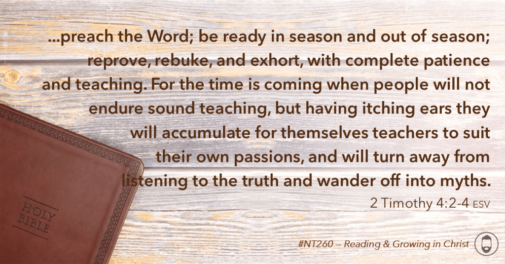 Paul ends this letter with a weighty, end-times charge. Timothy’s ministry happens “in the presence of God and of Christ Jesus,” the coming Judge of all, and under the certainty of Christ’s appearing and kingdom (v. 1). Because of that reality, Timothy must preach the Word — ready when it’s welcome and when it’s not — using Scripture to correct, confront, and encourage with steady patience and careful teaching (v. 2). Paul knows what’s coming (and already happening): many won’t tolerate sound doctrine. Instead, they’ll chase teachers who tell them what they want to hear, swapping truth for myths because their desires are driving the steering wheel (vv. 3–4). So Timothy must stay clear-minded, endure suffering, keep doing gospel work, and finish what God has given him to do (v. 5).