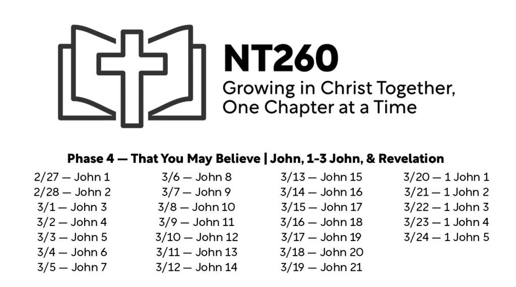 Continue reading in our NT260 plan with the final section, the second part of Phase 4 — That You May Believe.