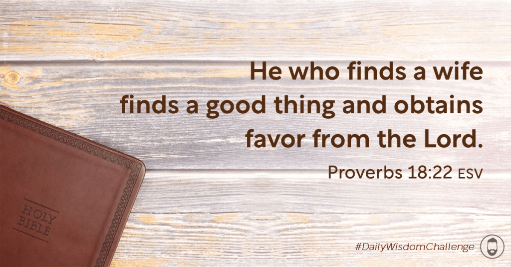 But Proverbs 18:22 is not just about me and Candice. It, like so many other proverbs, finds its meaning not only in its own words but in contrast to others. As we looked at when discussing the “forbidden woman” v. the wife of one’s youth in Proverb 5, there is a contrast between the life that God prescribes and the paths that forge on their own. In the coming chapters of Proverbs (21:19 and 25:24), there is a contrast between wives who seek to be something other than a good thing or godly favor but to drive their husbands to be better off living “in a desert land” (Proverbs 21:19) or on “a corner of the housetop than in a house” (Proverbs 25:24).
