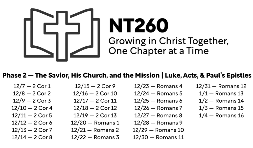 Continue reading in our NT260 plan with Phase 2 — The Savior, His Church, and the Mission.