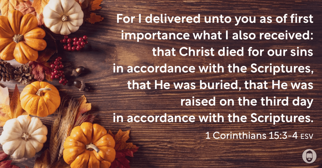I’m thankful for the gospel — the good news of Jesus Christ — that tells us that He died for our sins on the cross we deserved, was buried, and rose from the dead defeating death, hell, and the grave.